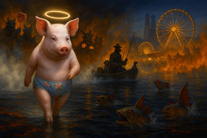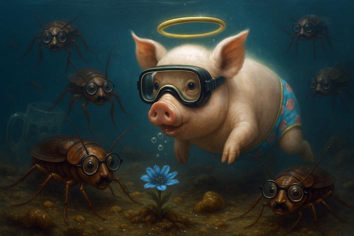Schwein-Geist in Kloake vor Ofterdingens blauer Blume
