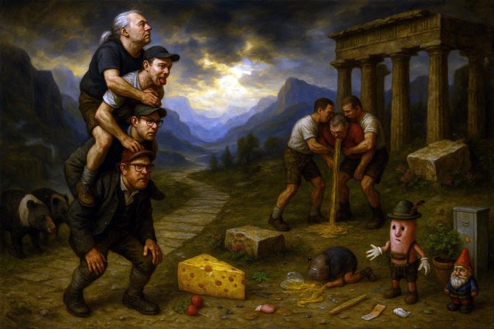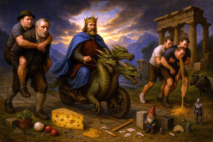 Arkadien_mit_Emmentalkerkaese_zwei_Tapiren_einem_Königstreuen_auf_einem_lindwurmbetriebenen_Moped_und_noch_so_Allerhand