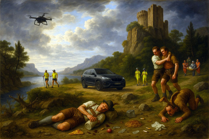 Arkadien_Chefetage_einer_Werbeagentur_mit_Kunden_nach_Wiesnbesuch_bei_einem_Huckepackausflu